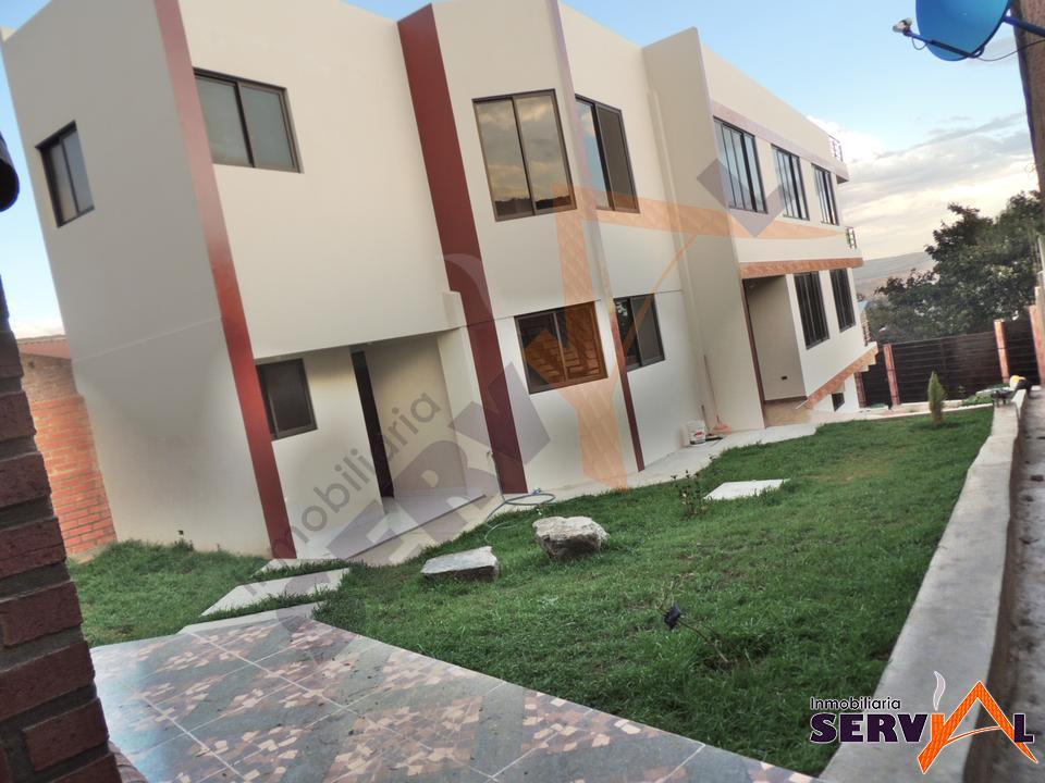 144.000 $US.- Espectacular Casa a Estrenar de 2 plantas en Venta Colegio Tiquipaya Inmediaciones Av. Ecologica. Tiene 332m2 de superficie y 380m2 de construcción y 14m2 de frente, consta de: