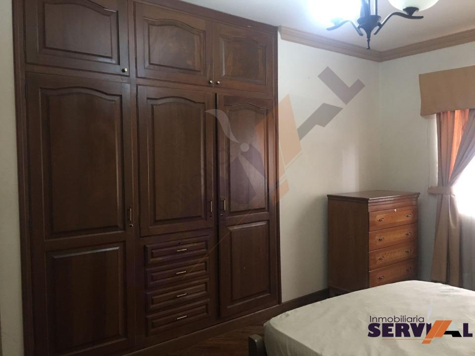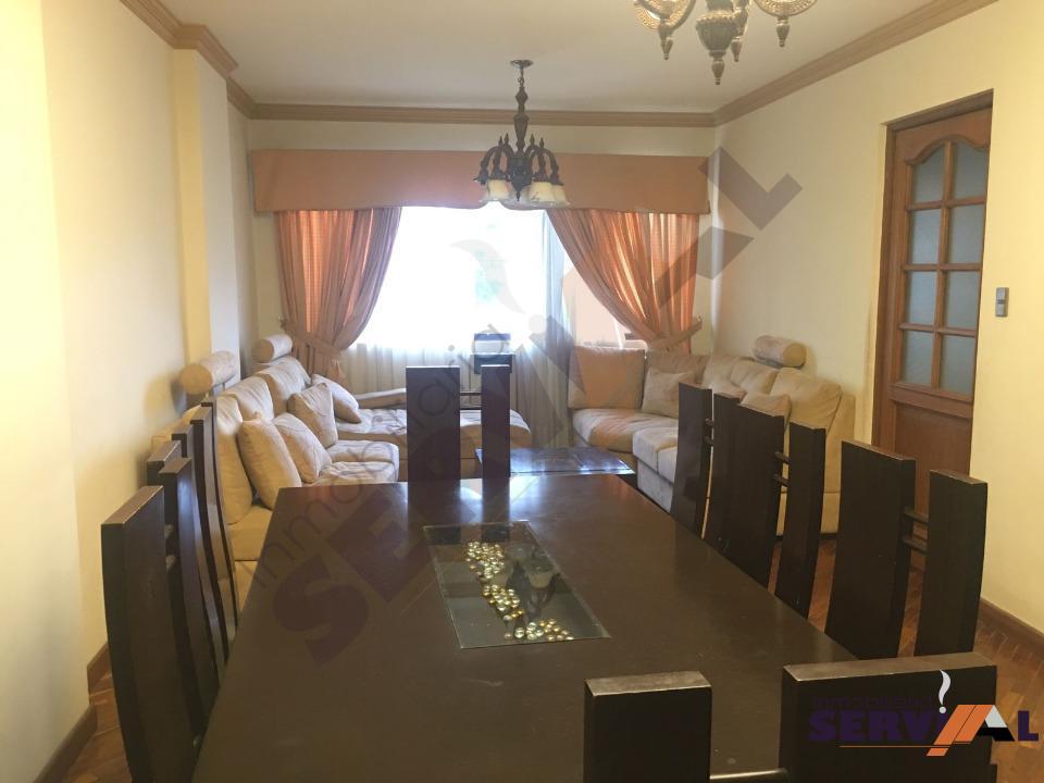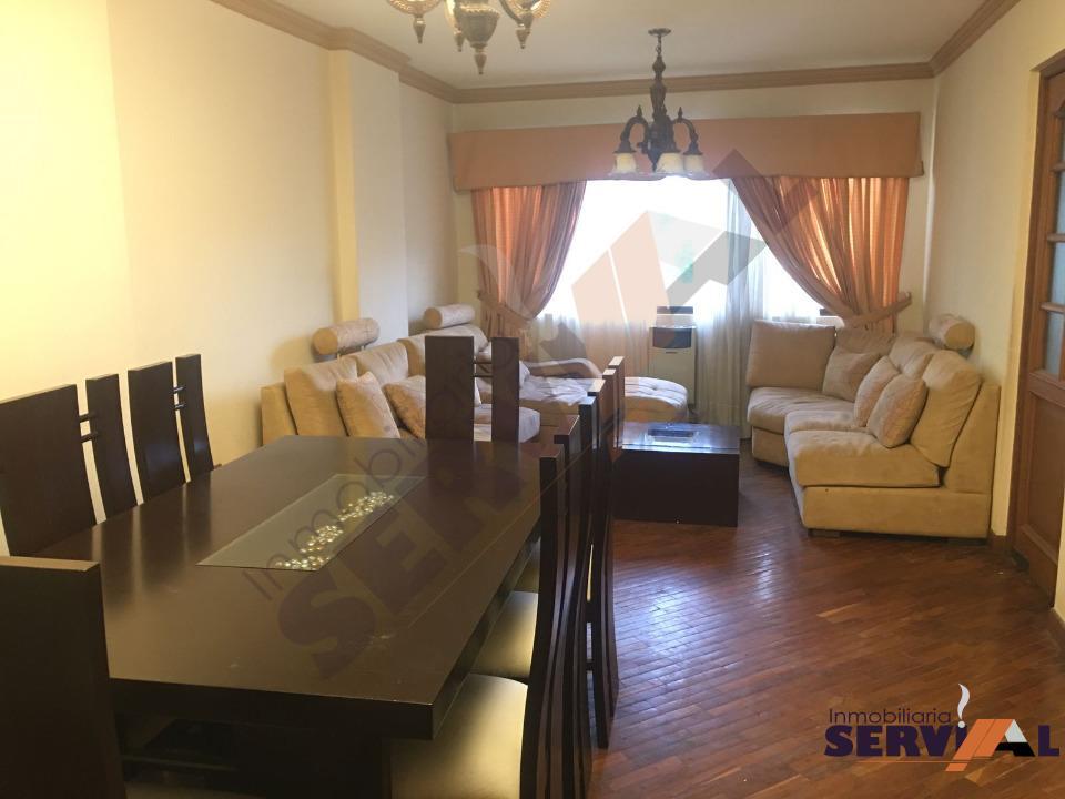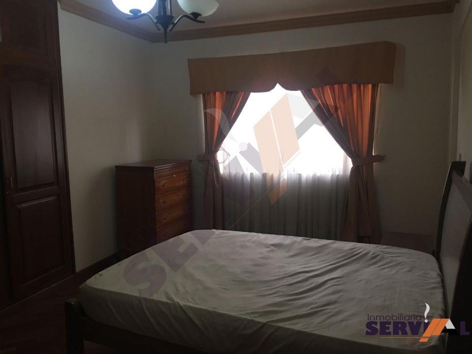 300 $US Departamento amoblado inmediaciones de Las Torres Sofer, próximo a la av. Oquendo consta de: 1 suite con ropero y cama, 1 dormitorios con roperos, dependencias de empleada (habitación con baño) baño de visitas, living-comedor, cocina con cajoneria alta y baja.