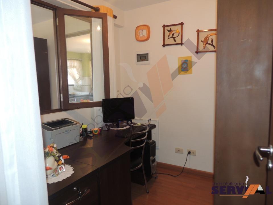 129.000$US. Hermoso departamento en venta, completamente iluminado, inmediaciones de Av. Tadeo Haenke y Av. Juan Pablo II zona Seminario. Consta de: un área total de construccion 152 m2, tiene 1 suite, 2 dormitorios con roperos empotrados, escritorio, 3 baños, cocina con cajoneria alta y baja, despensa, lving-comedor con balcón, área de lavado, depósito y garaje para una movilidad..