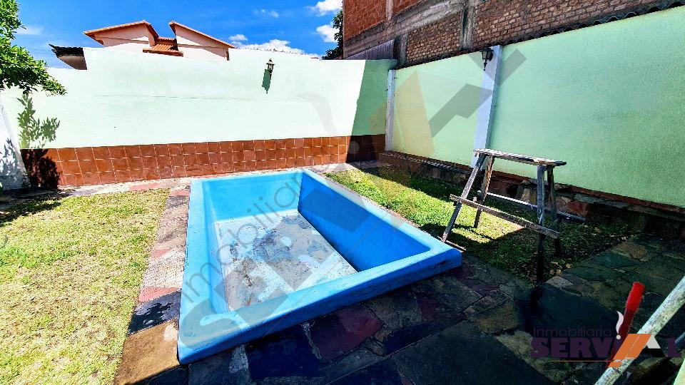 500 $us.- Casa en alquiler en inmediaciones Parque Fidel Anze próximo a la Av. Melchor Urquidi, sobre 570 m2, consta de: 3 dormitorios con roperos empotrados, living-comedor, cocina con cajonería alta y baja, baño, dependencias de empleada (habitación con baño independiente), amplio jardín, patio, garaje para 2 vehículos, piscina. (cod:CA619)