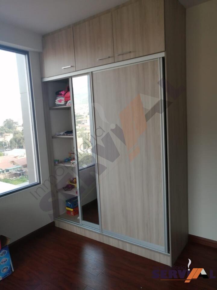 375 $US (2.600 BS).- Departamento a estrena en alquiler en inmediaciones de la Av. Simon Lopez, Mercado 10 de Febrero, consta de: 1 suite con ropero empotrado, 2 dormitorios con roperos empotrados, living-comedor, cocina con cajonería alta y baja, extractor de grasa, garaje y baulera. (Cod:DA1652)