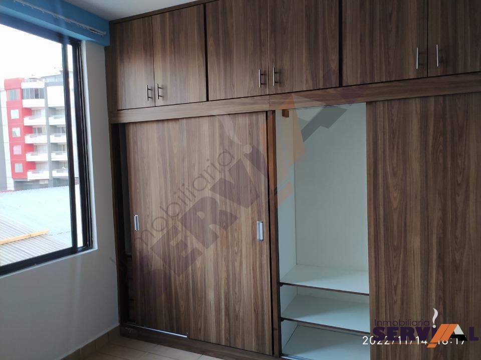2.300 Bs.- Departamento en alquiler en inmediaciones del Ic Norte de la Av Melchor Perez y D´orbigny, consta de: 1 suite con ropero empotrado, 2 dormitorios con roperos empotrados, living-comedor, cocina con cajonería alta y baja, escritorio y baño, (Cod:DA2035)