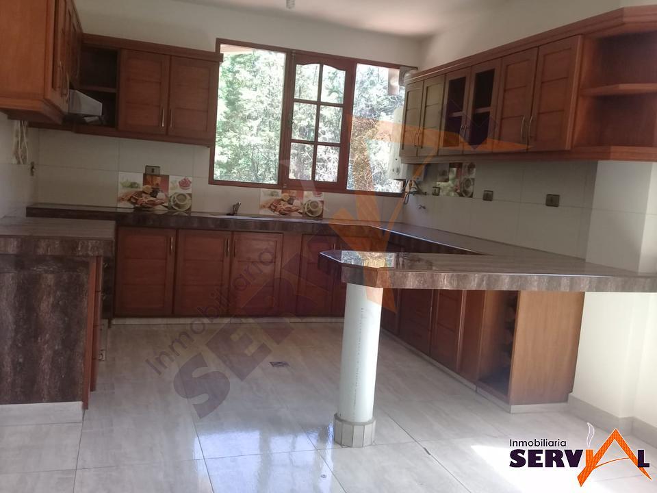 360 $US (2500 Bs).- Departamento en alquiler, inmediaciones del Jardin Botanico, Zona Muyurina; consta de 1 suite con ropero empotrado, 2 dormitorios con roperos empotrados, living, comedor, cocina con cajoneria alta y baja, 2 baños y garaje para 1 vehículo.(DA1275)