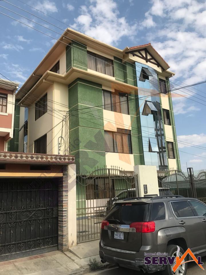 350 $us.- Alquilo amplio y hermoso departamento acabados de primera, construcción sobre 167 m2, inmediaciones de la Av. Tadeo Haenke y Av. Villavicencio, consta de: 1 suite con ropero empotrado, 2 dormitorios con roperos empotrados, baño, living- comerdor, cocina con cajonería alta y baja (cajonería de madera y mesón de marmol), dependencias de empleada con baño independiente, garaje para una movilidad, churrasquero