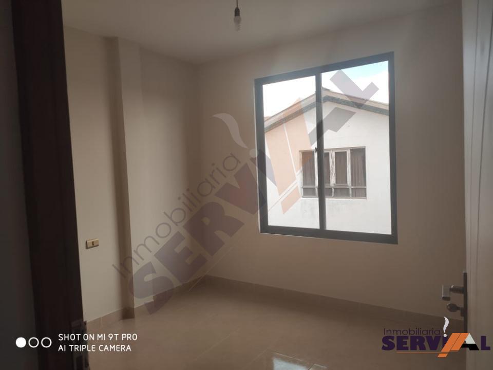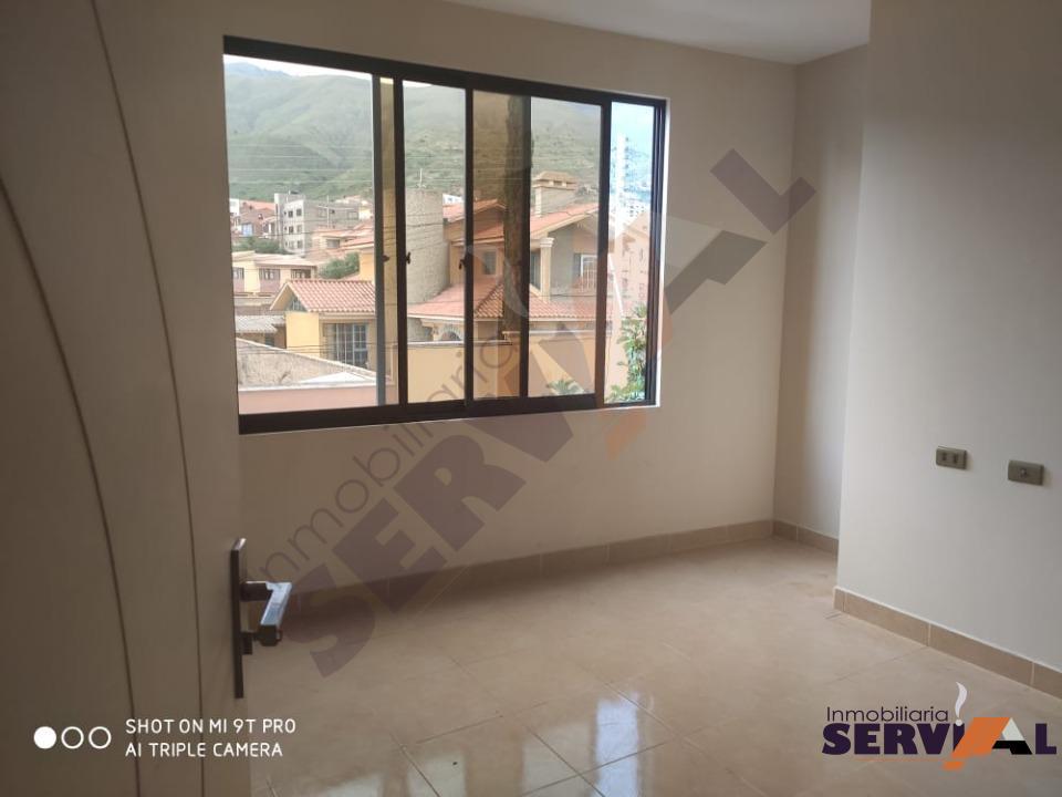 290 $US- (2.000 BS)- Bonito Departamento en alquiler Inmediaciones colegio Señor de Mayo Zona Pacata Baja, consta de: 1 suite, 2 dormitorios, living-comedor, cocina con cajonería alta y baja, 2 baños, GARAJE. (COD:DA1508)