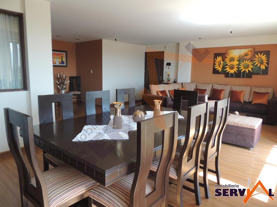 129.000$US. Hermoso departamento en venta, completamente iluminado, inmediaciones de Av. Tadeo Haenke y Av. Juan Pablo II zona Seminario. Consta de: un área total de construccion 152 m2, tiene 1 suite, 2 dormitorios con roperos empotrados, escritorio, 3 baños, cocina con cajoneria alta y baja, despensa, lving-comedor con balcón, área de lavado, depósito y garaje para una movilidad..