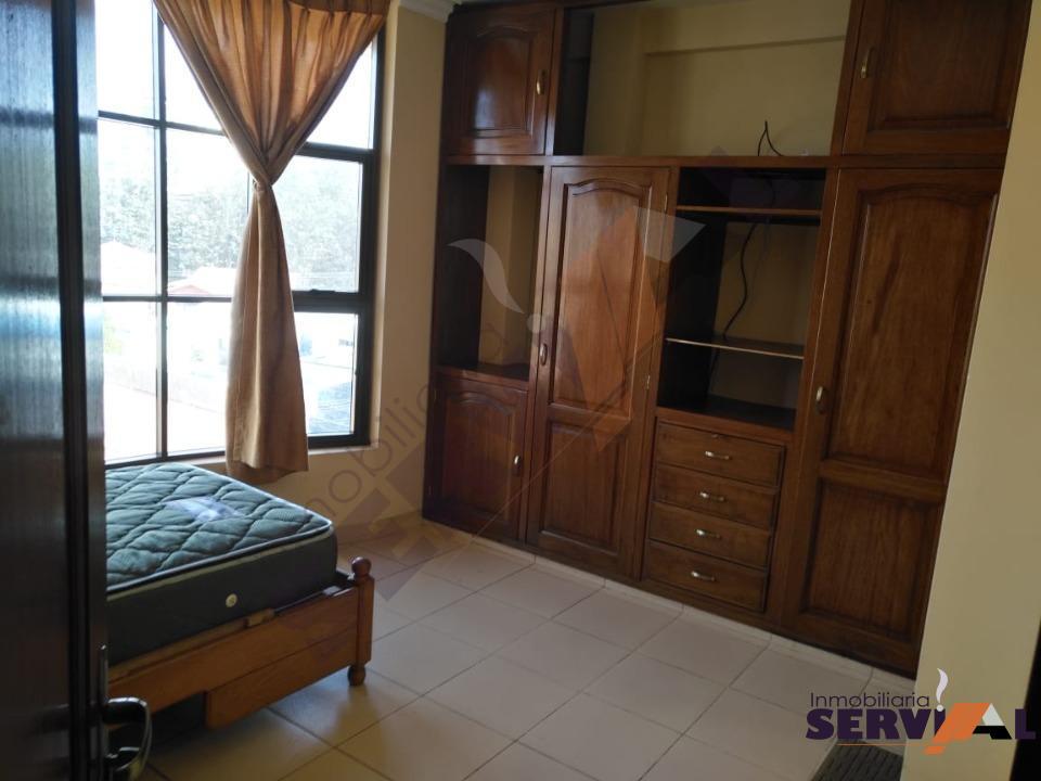 330$ (2300 bs) Departamento semi-amoblado en alquiler inmediaciones Plazuela Colon; este consta de: 1 suite con cama de plaza y media y ropero empotrado, 1 dormitorio con ropero empotrado, living-comedor con juego de 8 sillas y mesa, sofas, 1 baño, cocina con cajoneria alta y baja con cocicna de 4 ornallas y frigobar, escritorio con porta libros escritorio y silla., area de lavado con maquina lavadora.