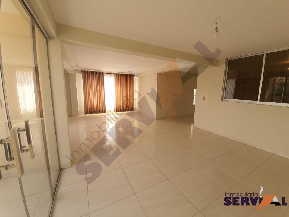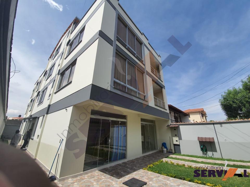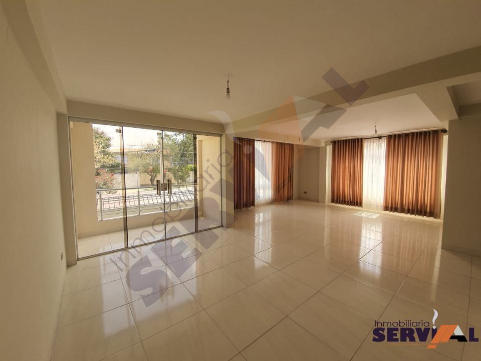 375 $us, (2600 Bs), Hermoso departamento a estrenar en ALQUILER, Inmediaciones HIPERMAXI de la Av. América, en 2do piso, se encuentra sobre 166 mts de superficie, cuenta con; 1 suite amplia con vestidor y su baño, 2 dormitorios amplios con roperos empotrados y con mucha luz natural, living-comedor, cocina con cajonería alta y baja, 3 baños, área de lavado, el edificio cuenta con terraza.